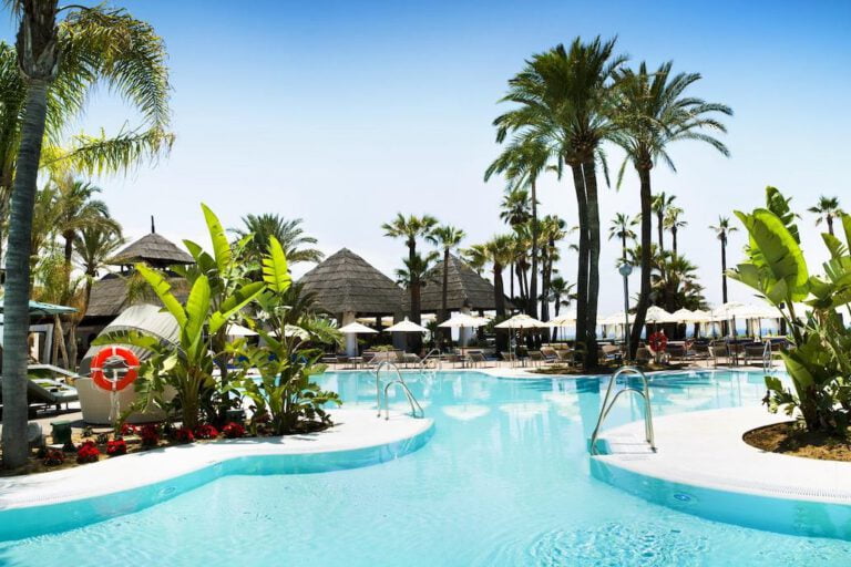Aan de rand van het centrum van Marbella vind je dit superluxe 5-sterrenhotel Gran Melia Don Pepe. Qua locatie in ieder geval een dikke plus. Deze van origine Spaanse keten heeft luxe hotels en resorts over de hele wereld. Ook hier zijn de kamers luxe ingericht, maar naar mijn mening wel een beetje gedateerd. Buiten ziet alles er wel echt fantastisch uit met bijvoorbeeld mooie cabana’s langs het zwembad.